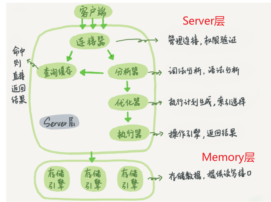 Server 层包括连接器、分析器、优化器、执行器、查询缓存。