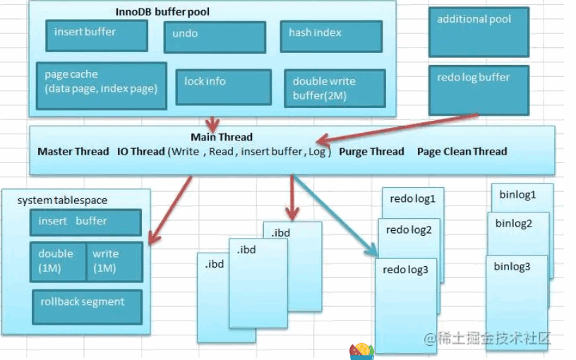 write thread(默认 4 个)read thread(默认 4 个)insert buffer threadlog io thread