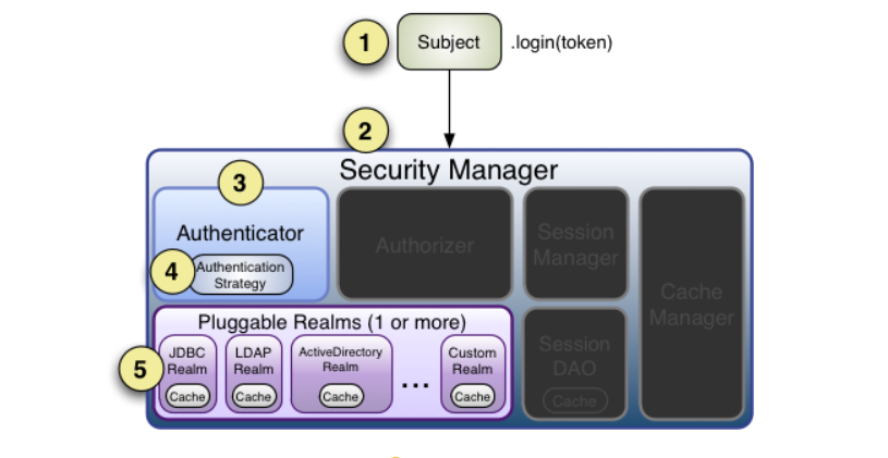 securityManager 接收 token 并调用 authenticator.authenticate(token)将认证信息提供给认证器进行认证。
