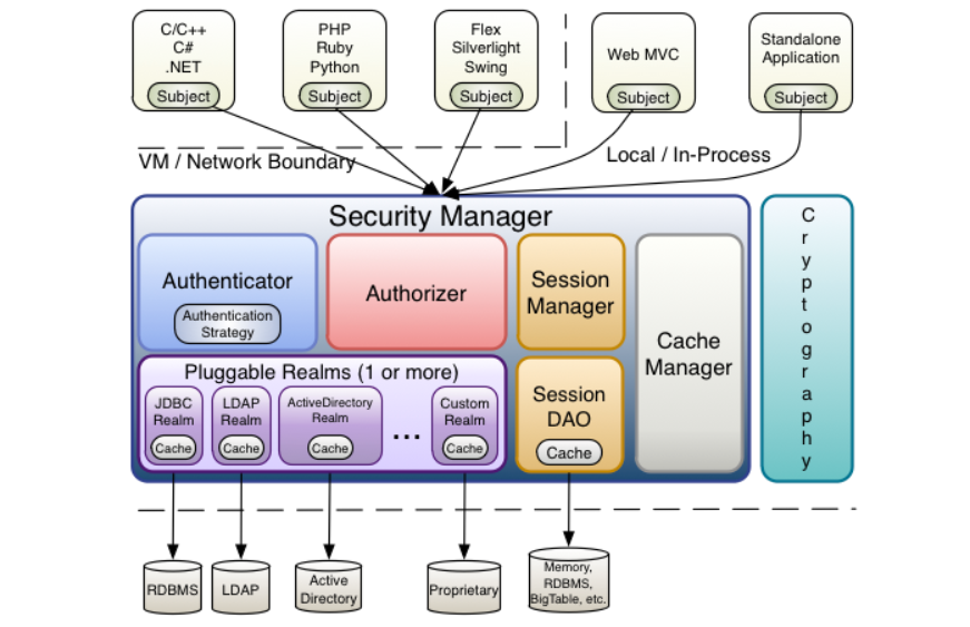 通过查询特定的数据源:数据库、LDAP 等。来对 Subject 进行认证和授权操作。